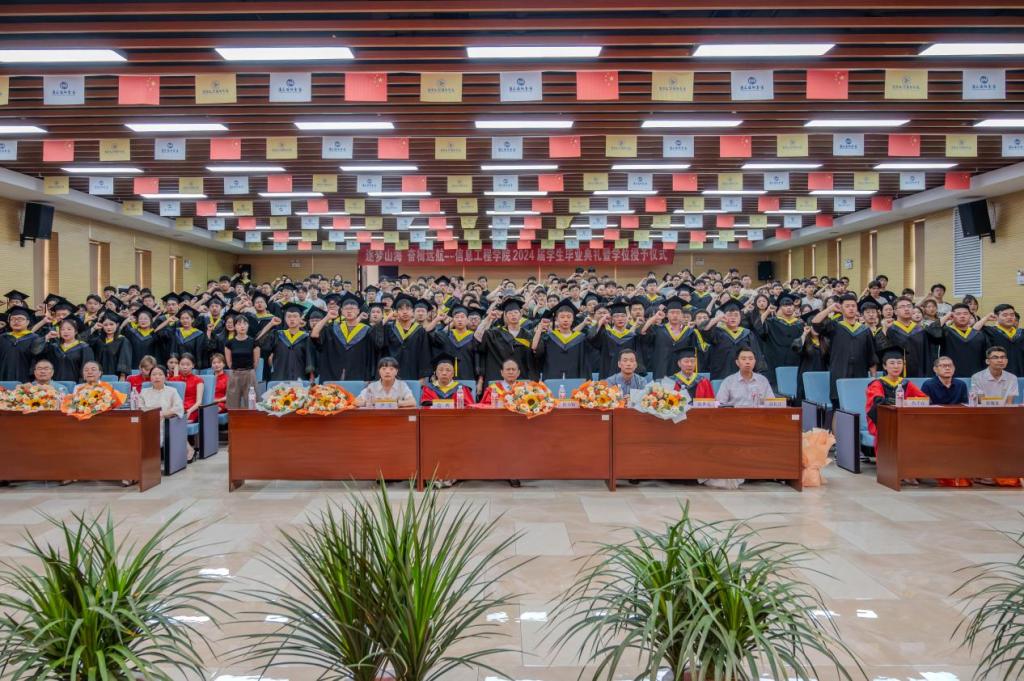 时至六月,序自三夏,时光荏苒,又到离别时节;记忆犹新,相遇犹在眼前。6月26日上午,信息工程学院在建德楼203举行2024届学生毕业典礼暨学位授予仪式。出席典礼的有校长王志刚,学校学位评定委员会委员、学院执行院长翟书颖,学校学位评定委员会委员陈世亮,学院党委书记肖千春,学院副院长范晖、张伟岗,学院党委副书记高长江,学院办公室主任尹莹,各专业负责人、家长代表、全体2024届毕业生。典礼由学院党委书记肖千春主持。