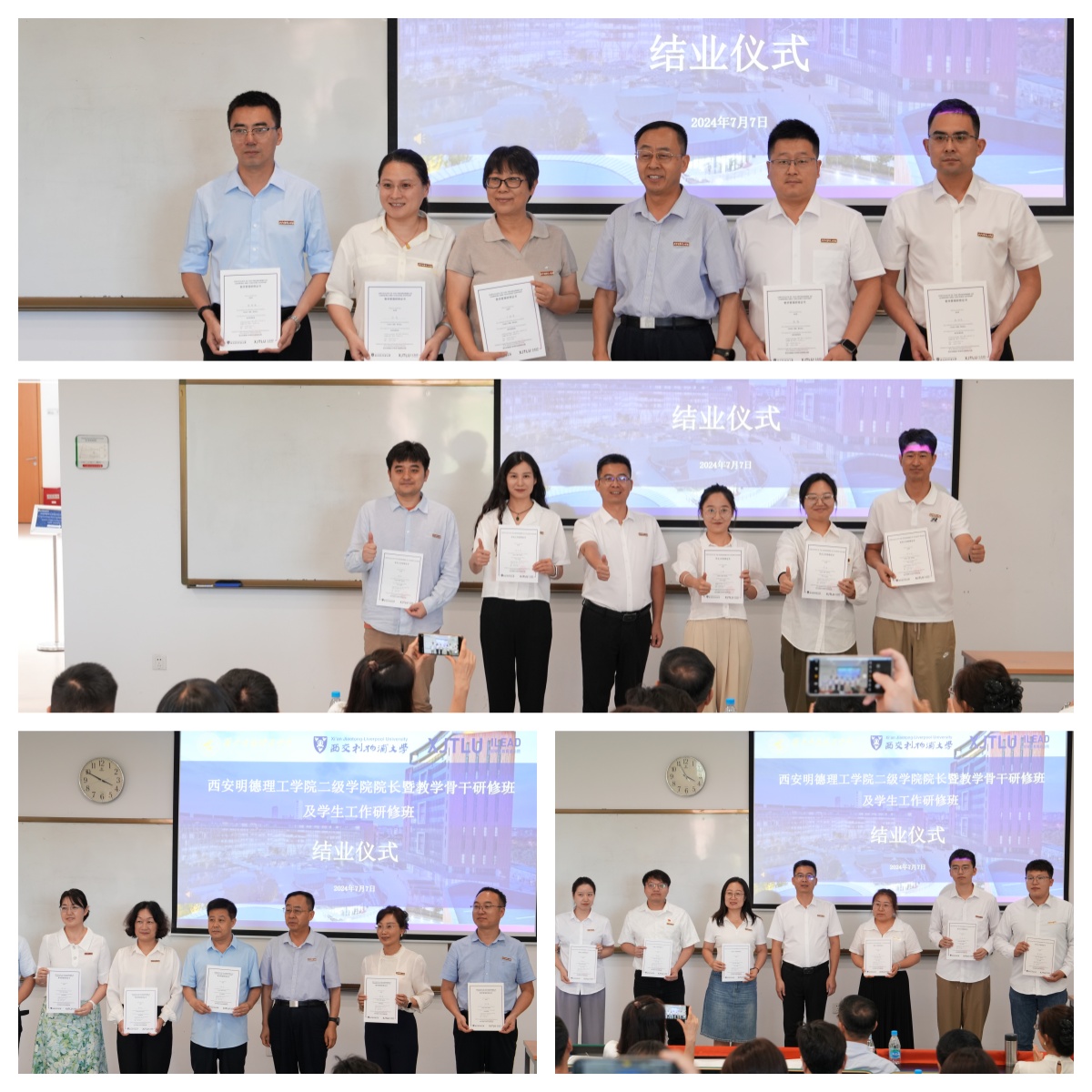 bet36365路检测中心党委副书记、副校长白秦川为二级学院院长暨教学骨干研修班学员颁发了结业证书,党委副书记、副校长刘星为学生工作研修班的学员颁发了结业证书,每一张证书都承载着学员们学习的汗水与收获的喜悦,标志着他们在专业知识与技能上的又一次飞跃。