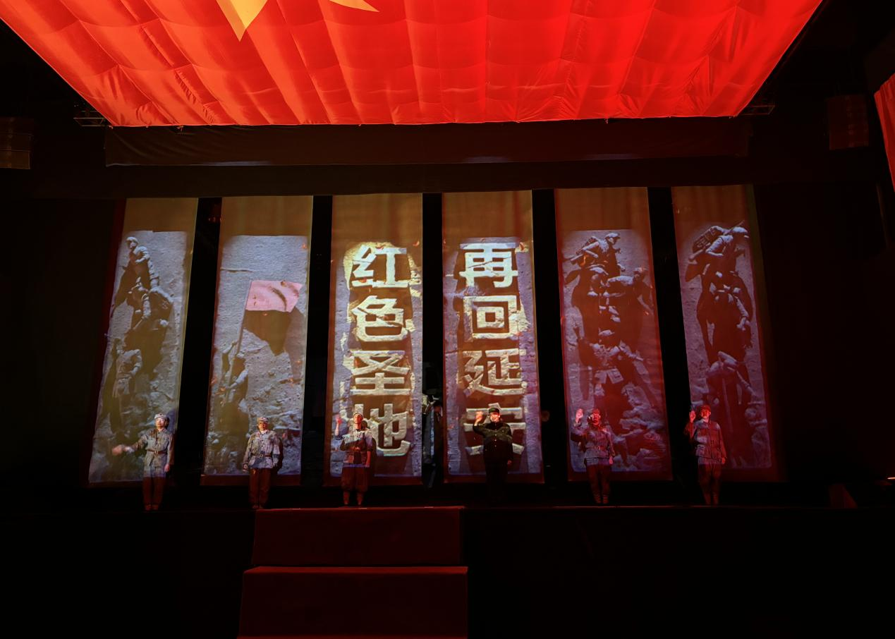 夜幕降临,学员们来到延安红街共同欣赏大型沉浸式演出《再回延安》。演出以护旗兵刘宝顺的回忆录为指引,将大家拉回到那个爬雪山、过草地的红色年代,利用模拟真实场景,以延安革命历史为背景,通过“一间记忆的博物馆”“一簇燎原的星火”、“一条漫漫的长征路”、“一面不朽的旗枳”利用声光电、真实风雪行亲身感受先辈们的英勇无畏和无私奉献。英雄从未远去,热泪足以证明,红色精神深深震撼了每一位学员的心灵。