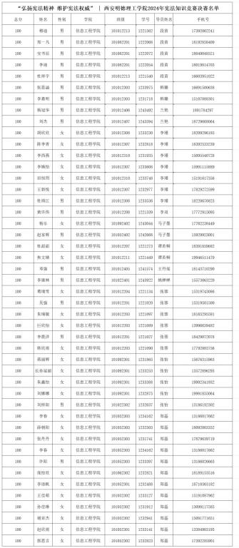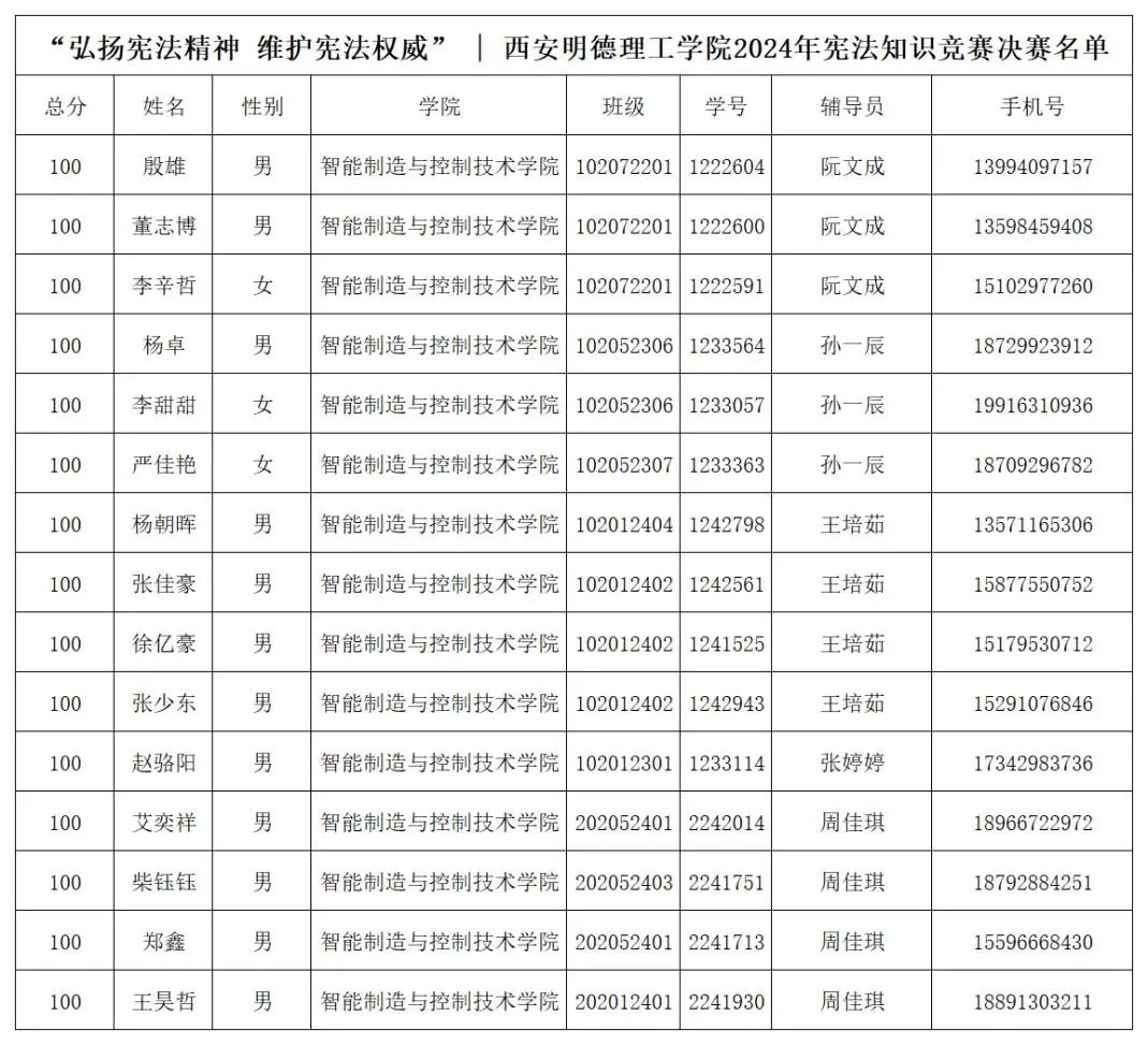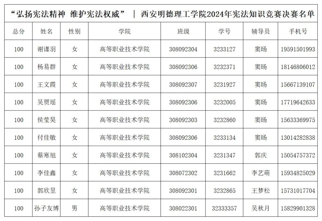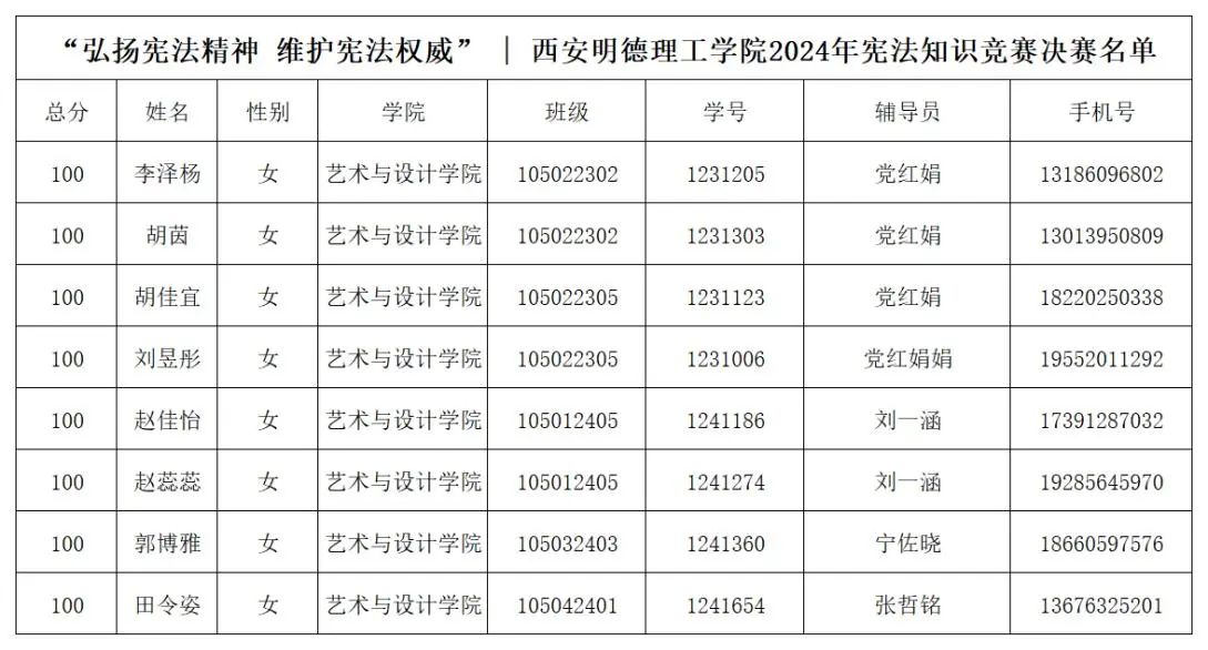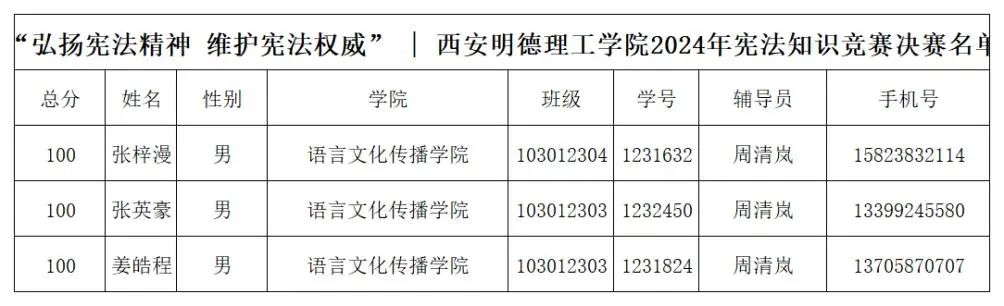 初赛采用线上答题的形式,将国家的根本制度、公民的权利与义务、宪法的地位和作用等多个核心内容融入题目中,经过对初赛(线上)答题情况的统计,基于分数排名及时间顺序综合考量,所确定的前100名参与决赛的同学!现将决赛(线下)名单公示如下: