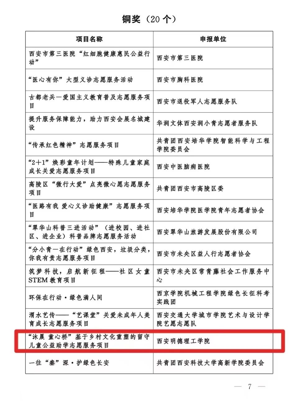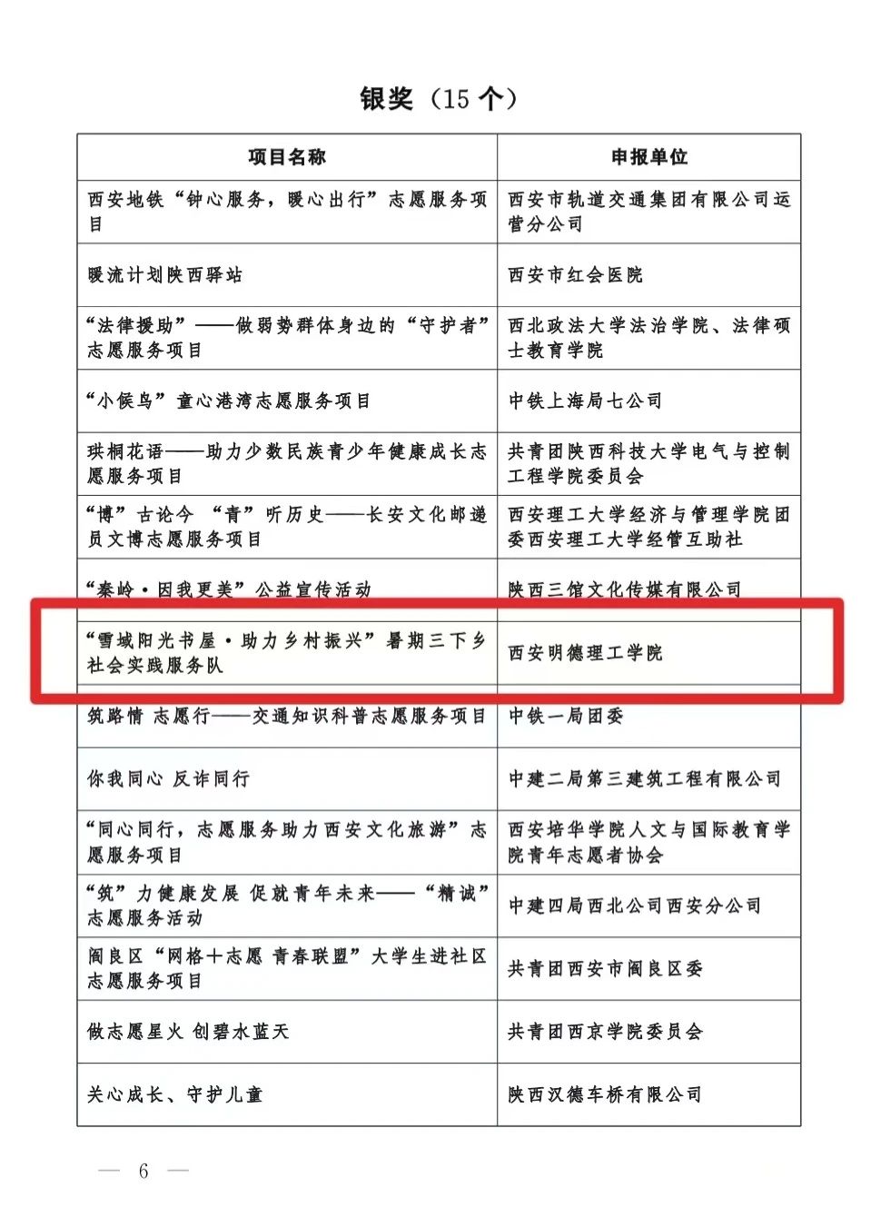 共青团西安市委、中共西安市委社会工作部等公布了西安市第二届青年志愿服务项目大赛项目评选结果的通报》,36365官网《“雪域阳光书屋·助力乡村振兴”暑期“三下乡”社会实践服务队》获得银奖,《“沐晨 童心桥”基于乡村文化重塑的留守儿童公益助学志愿服务项目》获得铜奖项目。