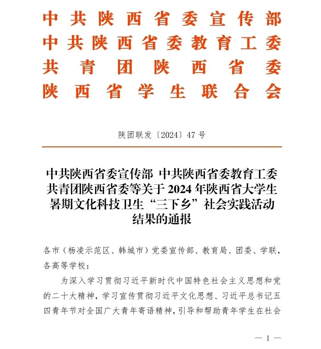 近日,中共陕西省委宣传部、中共陕西省委教育工委、共青团陕西省委下发了《关于2024年陕西省大学生暑期文化科技卫生“三下乡”社会实践活动结果的通报》,学校获得“省级示范学校”。bet36365路检测中心赴陕西镇巴“七彩假期·情系镇巴”暑期社会实践队荣获省级优秀团队,王飞、邹代柳、曹凯荣获省级先进个人。