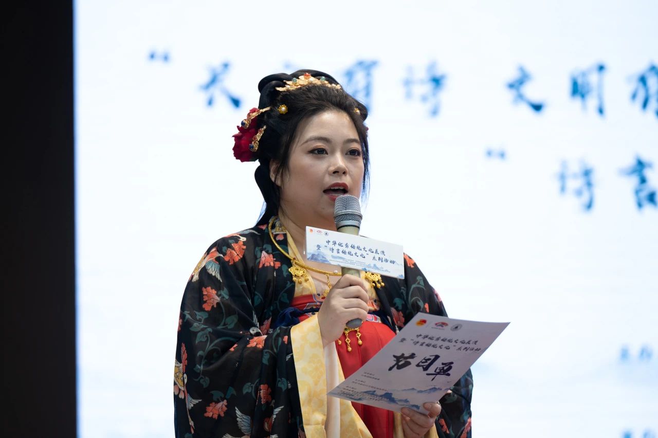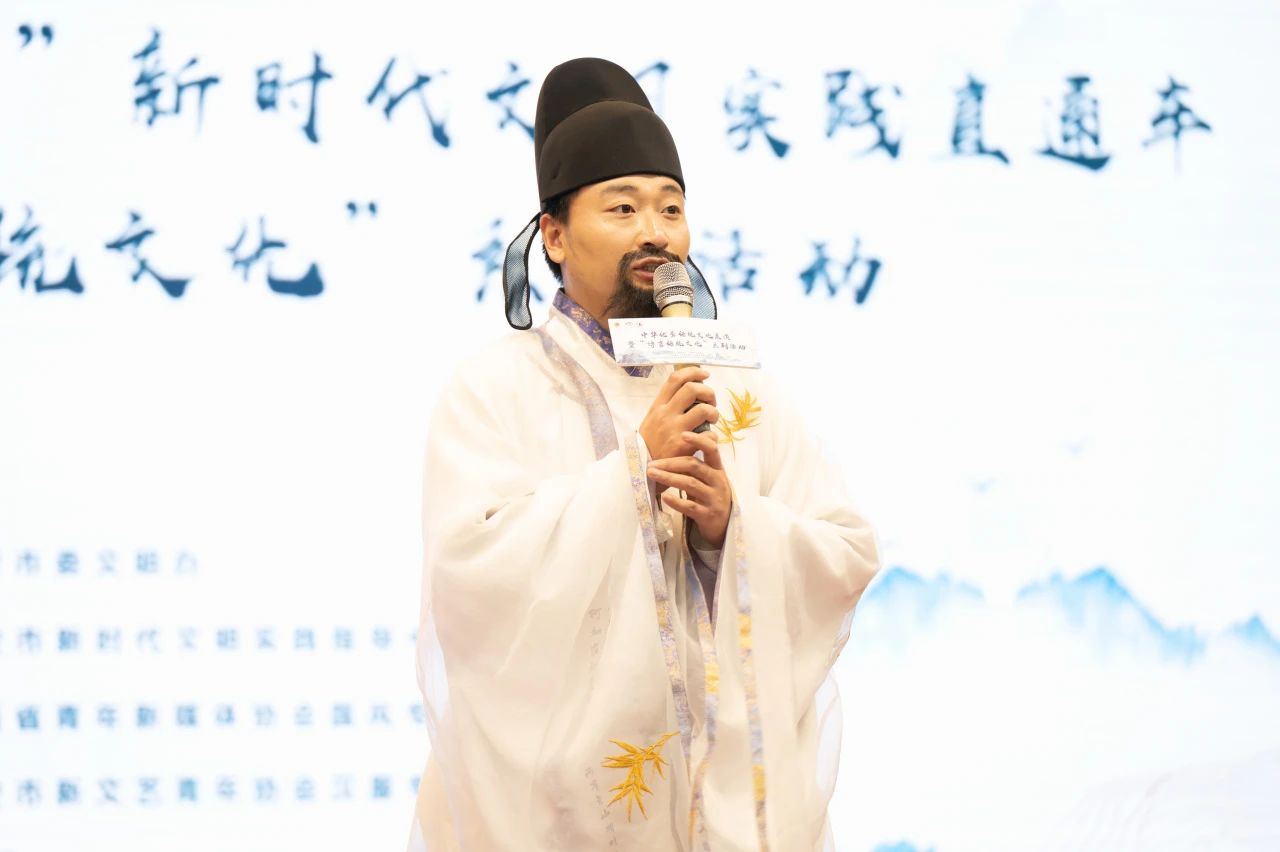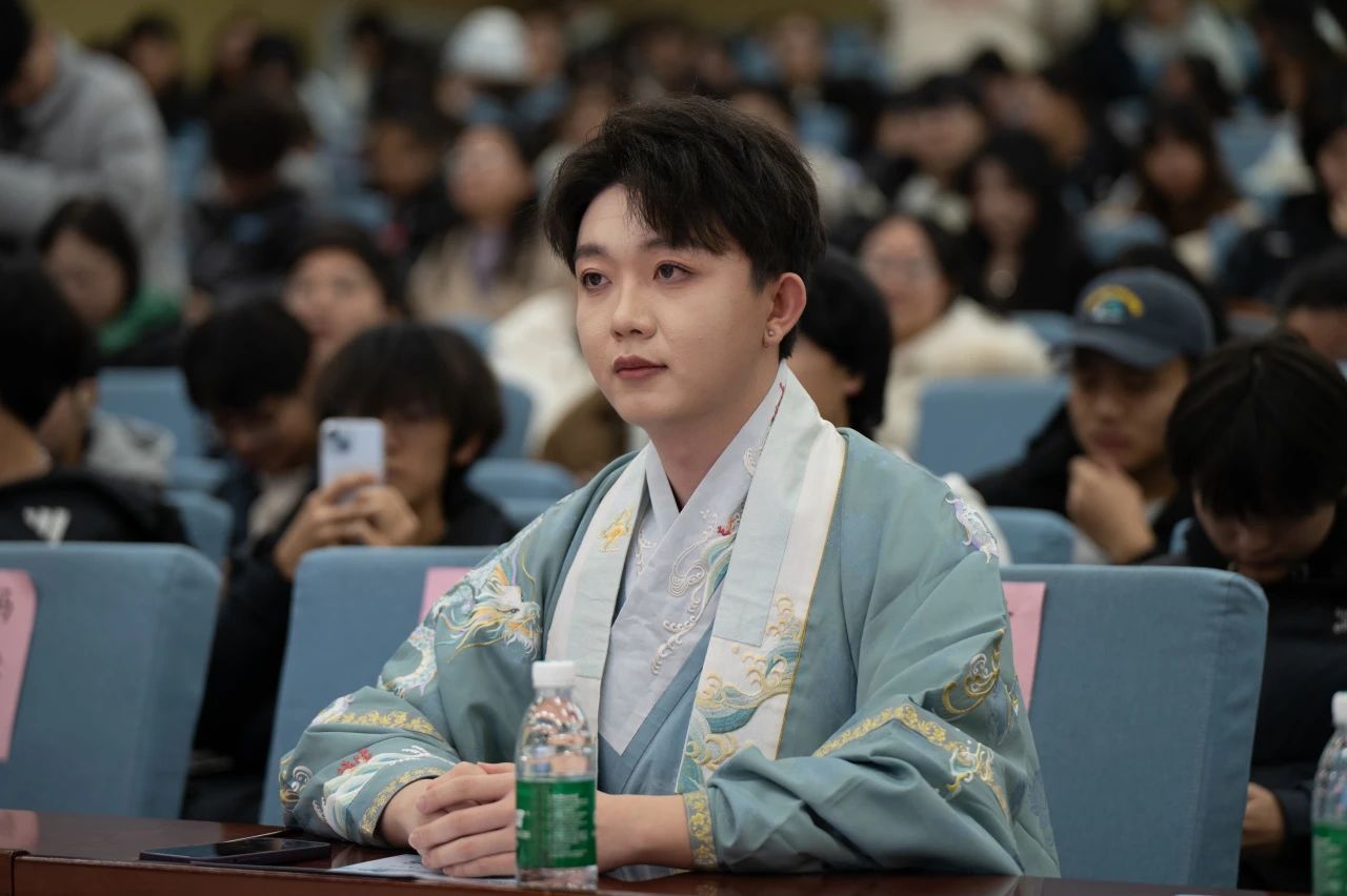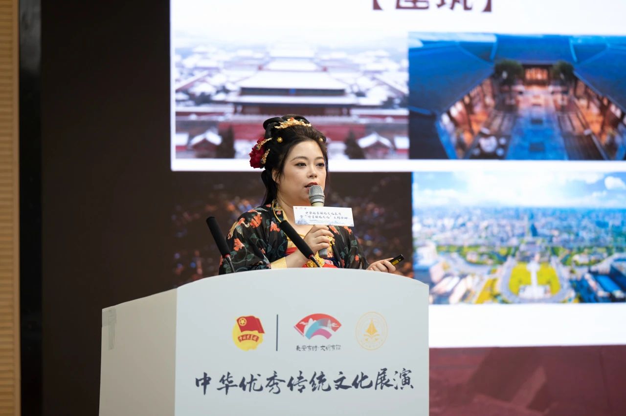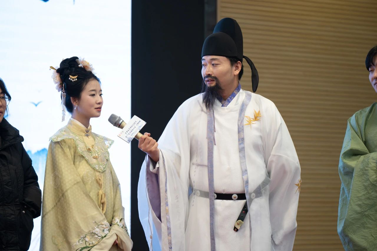 开场,主持人以“色、形、意”为引,解释了传统文化的意象,又向在场的师生观众介绍了各位文旅大使,并且用风趣幽默的语言全面而深入的介绍了传统文化的发展历史及独特魅力。
