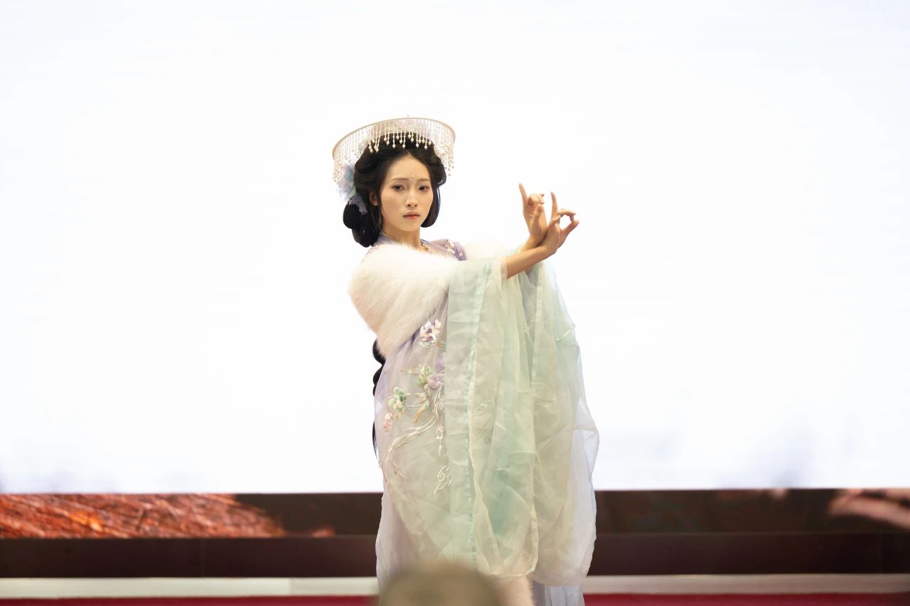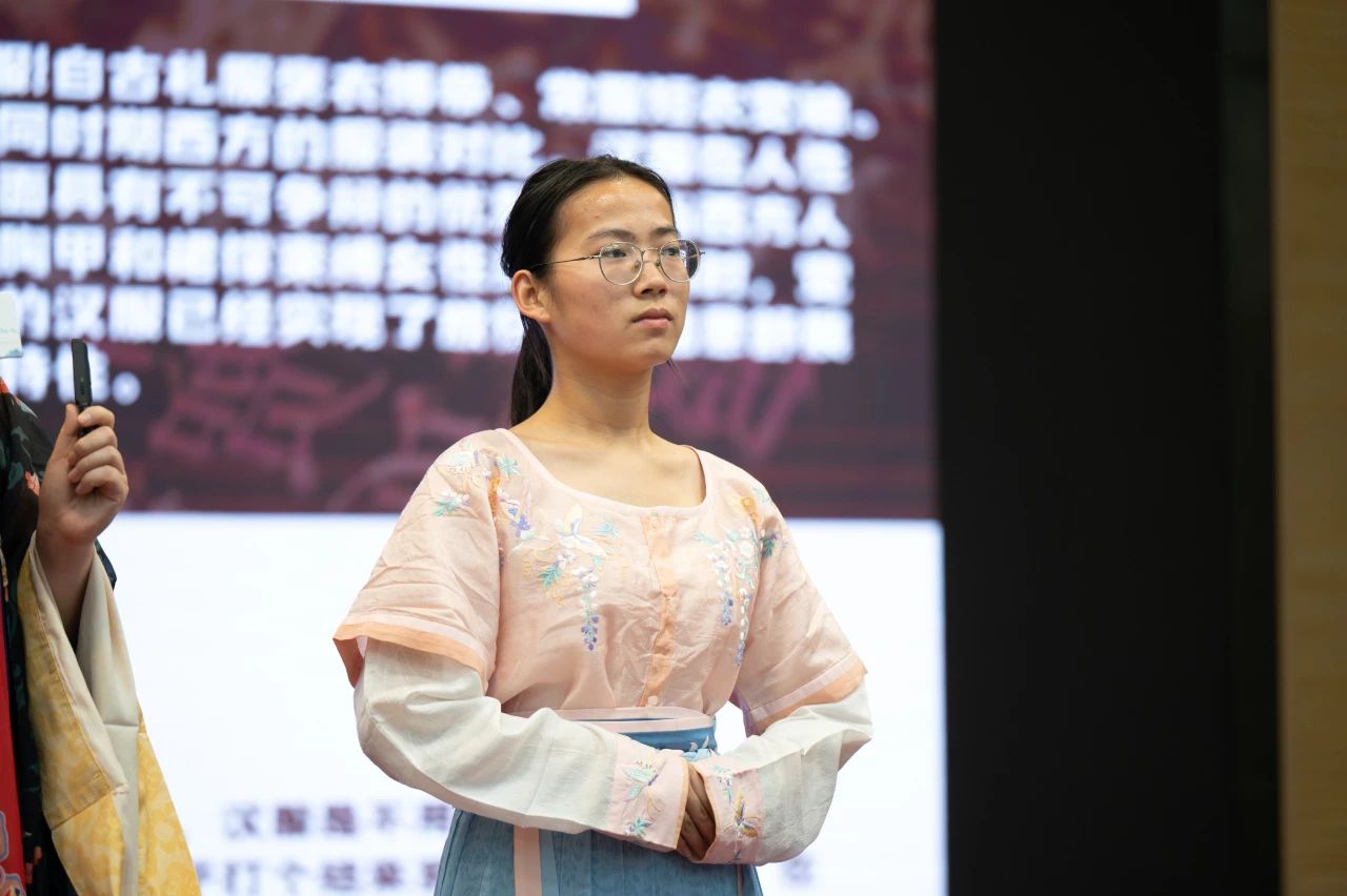 现场特意设置了汉服体验环节。同学们换上款式各异的汉服,刹那间仿若穿越千年时光。那飘飘衣袂,散发着独特魅力。衣袖轻挽,缓缓拂过,似是拨开历史银河的尘埃,大唐盛世的繁华盛景清晰浮现于眼前 。