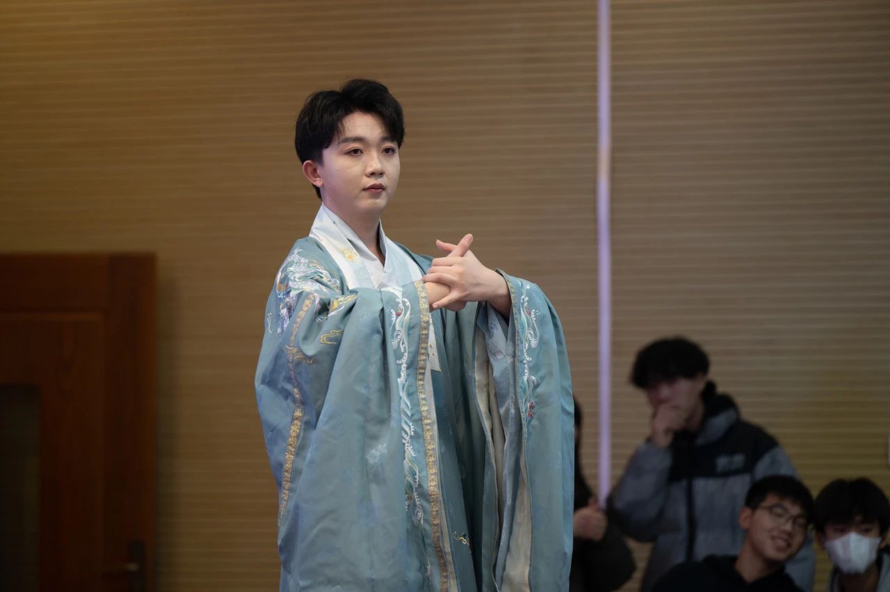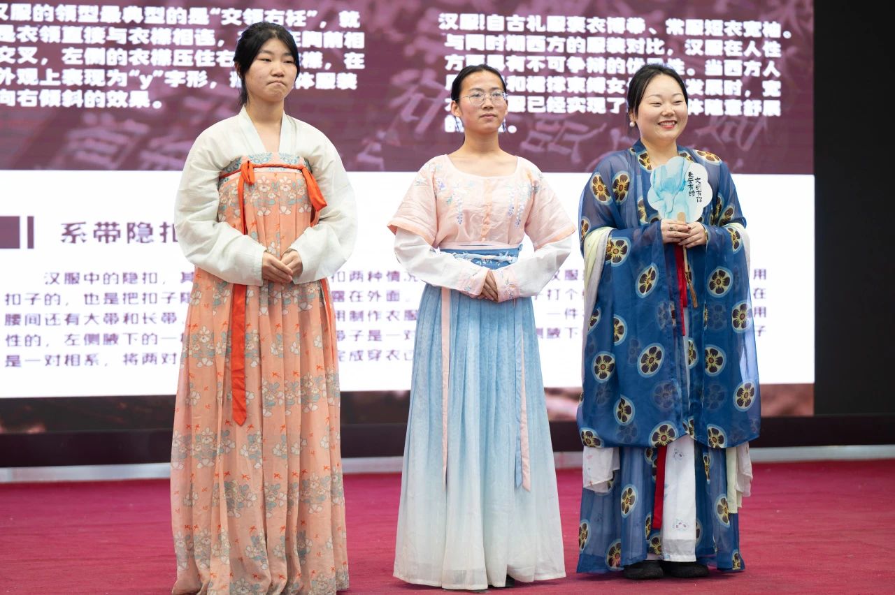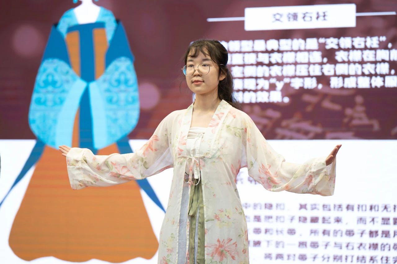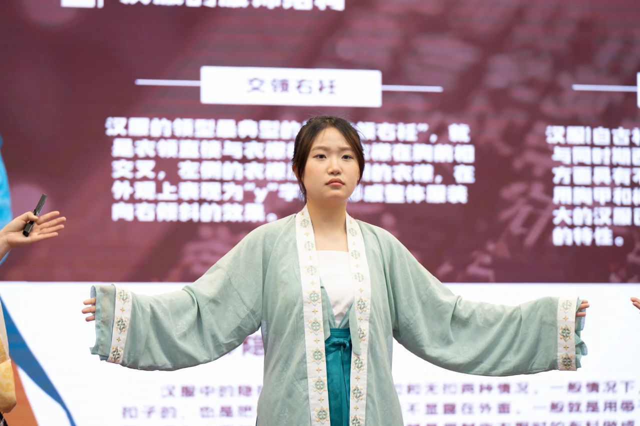 对襟齐腰的清新秀丽,袒领半臂的娇俏灵动,褒衣博带的洒脱超凡,衣袂飘飘的诗意风流。主持人的讲解深入浅出、循序渐进,大家也在其亲身示范的过程中逐一参悟,纷纷效仿起来,一副国泰民安、民族振兴之图愈演愈现。
