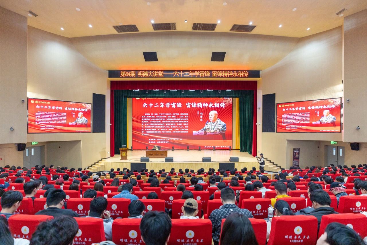 3月19日。邀请全国“两模”“五先”重残功臣张清海举办《六十二年学雷锋、雷锋精神永相传》专题报告,他以雷锋同志的生平事迹为引,结合自身62年学雷锋的奋斗历程,从“学生时代学雷锋”“美好军营学雷锋”“退休返乡学雷锋”三个阶段,深情讲述了一名共产党员、退役军人的初心与坚守。以榜样力量激发青年使命担当。