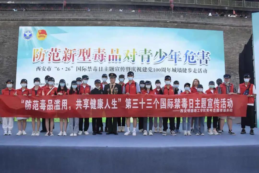 为认真贯彻落实国家、省禁毒委关于做好2021年“全民禁毒宣传月”宣传教育工作的安排部署,36365官网青年志愿者服务团受邀参加由西安市禁毒委员会主办,西安市禁毒委员会办公室、共青团西安市委承办,西安市碑林区禁毒委员会、共青团碑林区委、西安城墙管理委员会及西安小火柴志愿者服务中心协办的“6.26”国家禁毒日“防范毒品滥用,共享健康人生”为主题宣传暨建党100周年城墙健步走活动。