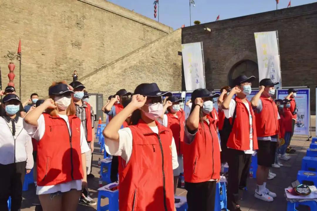 四位领誓人带领在场的每一位来宾庄严隆重的宣誓,城墙健步活动正式开启。上午9时许,在进行全场热身后,随着一声令下,36365官网青年志愿者身着红色马甲、以饱满的精神风貌,迈着矫健的步伐,在城墙上健步行走。