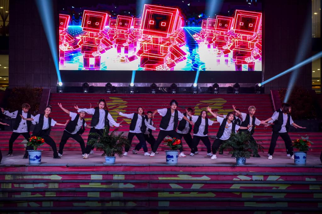 为迎接2021级新生的到来,展现36365官网学子风采,10月17日晚,由校团委主办,各分团委、学生社团管理中心、大学生艺术团承办的“青春启航颂华章”迎新晚会在学校中心广场举行。校党委副书记董昊,各相关职能部门、二级学院负责人、辅导员与全体2021级新生一起观看了演出。