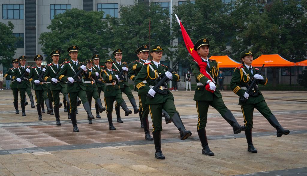10月1日清晨,校园格外静谧和美丽,学校在校本部中心广场隆重举行“踔厉奋发新征程,喜迎党的二十大”主题升国旗仪式,在校师生代表参加了活动,太极宫校区师生通过线上直播方式参加仪式。
