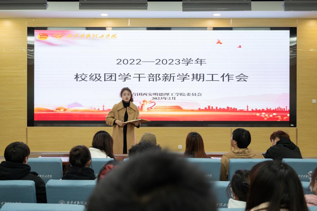 为加强团学干部队伍建设,推动新学期共青团工作顺利开展。2月20日晚,校团委在建德楼202教室召开新学期团学干部工作会。会议由校团委副书记乔建老师主持,相关负责老师及校级团学组织负责人参加了会议。