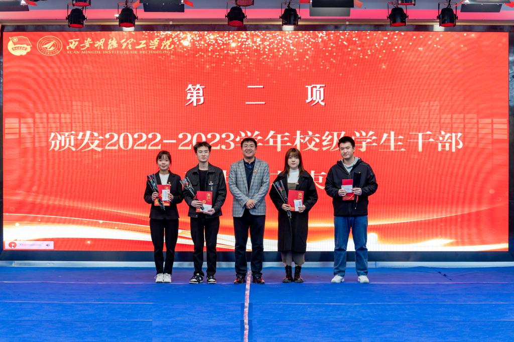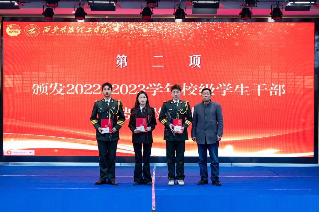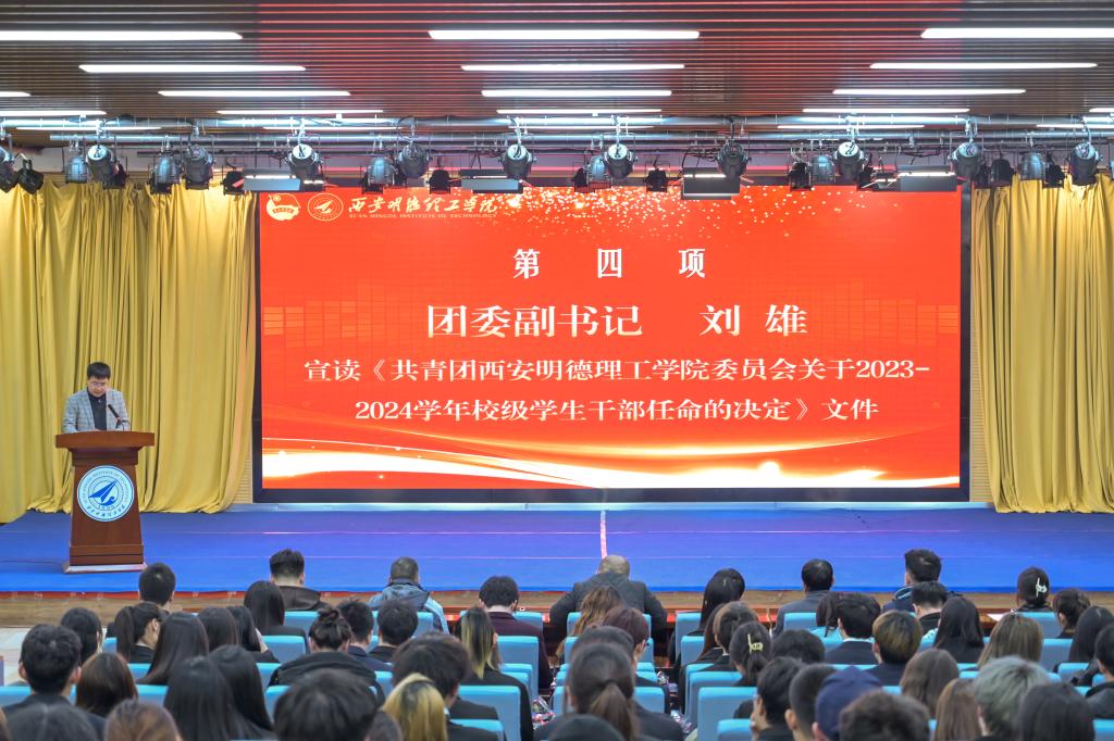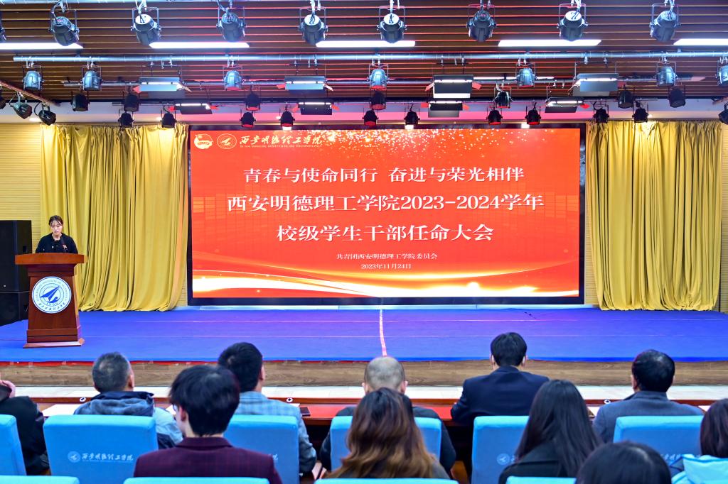 为提高学生干部自我管理、自我服务、自我教育的意识,进一步加强学生干部队伍建设。11月24日,校团委在建德楼203组织开展“青春与使命同行 奋进与荣光相伴”西安明德理工学2023-2024学年校级学生干部任命大会。团委书记童杨梓,团委副书记刘雄、乔建,学校人武部、国旗护卫队指导教师李传斌以及各院团委书记、校级学生组织指导教师代表、各校级学生组织学生代表参加会议,团委老师李丹妮主持会议。