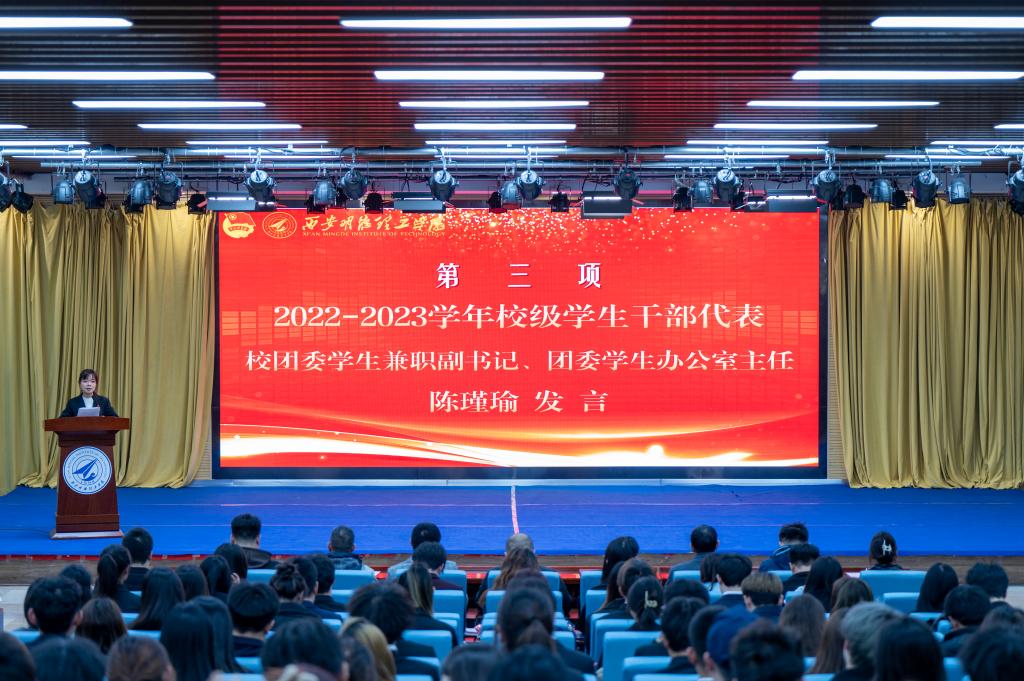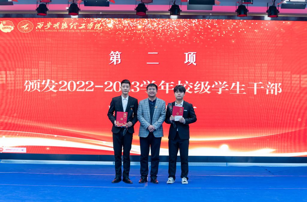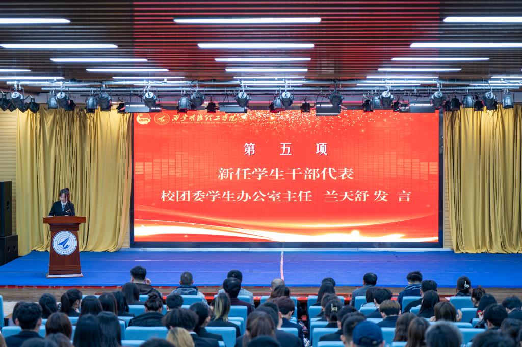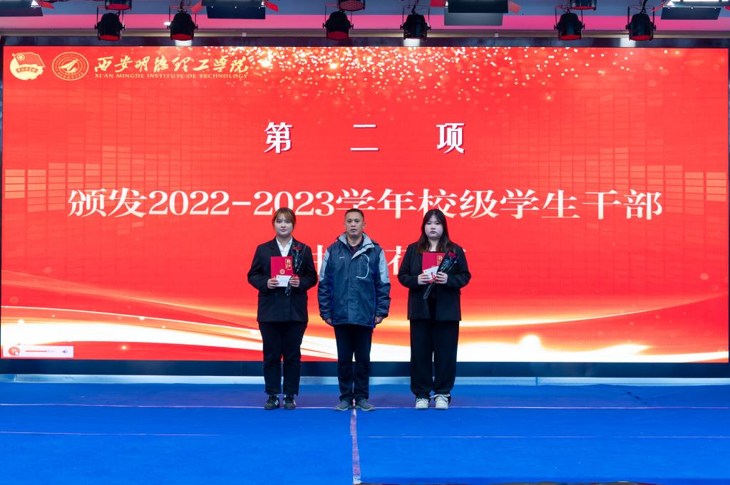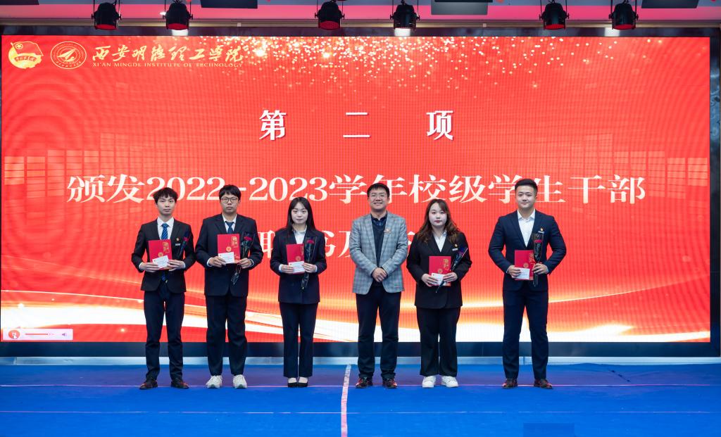 为提高学生干部自我管理、自我服务、自我教育的意识,进一步加强学生干部队伍建设。11月24日,校团委在建德楼203组织开展“青春与使命同行 奋进与荣光相伴”西安明德理工学2023-2024学年校级学生干部任命大会。团委书记童杨梓,团委副书记刘雄、乔建,学校人武部、国旗护卫队指导教师李传斌以及各院团委书记、校级学生组织指导教师代表、各校级学生组织学生代表参加会议,团委老师李丹妮主持会议。