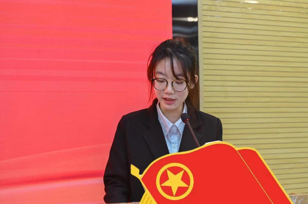 活动伊始,全体参会成员起立共唱《中华人民共和国国歌》;校团委副书记乔建老师宣读了2023年度新发展团员名单;各二级学院团委书记为新团员代表颁发团员证并佩戴团徽;校团委办公室梁智杰同学带领新团员庄严宣誓;入团介绍人代表兰天舒同学宣读了《中国共产主义青年团章程》中有关团员的权利和义务的相关内容;吕梦菲同学代表新团员发言,她对自己能光荣地加入中国共青团而感到无比自豪,她号召大家要永远铭记自己立下的誓言,以团员的标准严格要求自己并承诺在今后的学习生活中要不断提高自己、完善自己,不负韶华,勇于担当,力争成为德才兼备的优秀共青团员;校团委乔建老师进行了总结发言,他激励青年学生要传承革命精神、坚定理想信念、勤奋学习、练就本领。他讲到,广大团员要时刻牢记入团誓词,践行初心诺言,勇于进取创新,甘于艰苦奋斗,用执着的信念、只争朝夕的精神书写炫彩的青春华章。