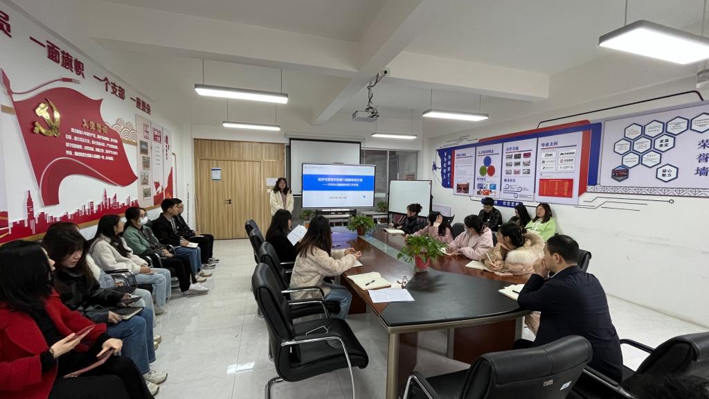 在学校第八届“阳光护航”心理育人宣传季实践活动中,为更好帮助辅导员掌握大学生心理健康教育工作的方式方法,提升心理育人工作的质量,促进学生健康成长。4月23日,经济与管理学院在明志楼北606开展第六期辅导员沙龙活动——大学生心理健康教育工作交流。经济与管理学院党委书记兼行政副院长何文举,学校心理健康中心专职教师赵恩萌,经济与管理学院全体辅导员参加了活动,活动由学院心理专干张爽主持。