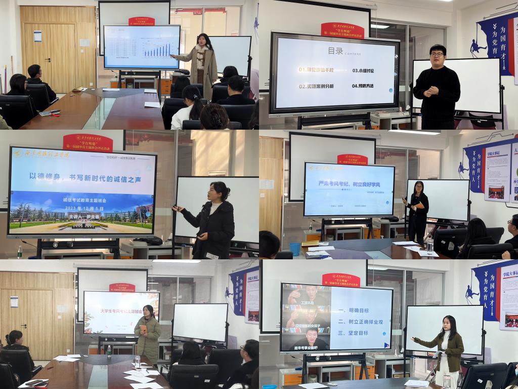 本次活动按照学校党委学生工作部《关于开展“学在明德”第一届辅导员主题班会评比活动的通知》组织开展,围绕“学在明德,学风建设“主题,经济与管理学院全体辅导员积极参与,并推选出六名辅导员进行院内初步评选,评选内容包括班会教案设计及班会课现场展示。参赛辅导员精心准备,认真设计,立足学生管理日常,从“大学生职业规划”,“诚信考试教育”,“预防诈骗”等主题进行班会现场展示,通过自主创设情境,图文视频结合,理论联系实际等生动丰富的形式全面展示自身综合素质能力。
