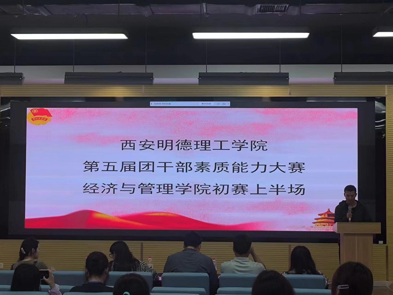 为深入学习宣传贯彻习近平新时代中国特色社会主义思想,全面贯彻落实党的二十大精神,推动经济与管理学院共青团工作融入“三全育人”格局和“大思政”体系,不断提升学院团干部思想政治工作的理论水平、专业素养和工作能力,4月27日,经济与管理学院第五届团干部素质能力大赛在6号教学楼201教室举行,大一至大三团支书参加比赛。经济与管理学院团委书记卢宝全,辅导员老师井小林、张朋、汪宏宇,团委副书记韩雅婷、任芾茜出席并担任比赛评委。团委副书记韩雅婷主持本次比赛。
