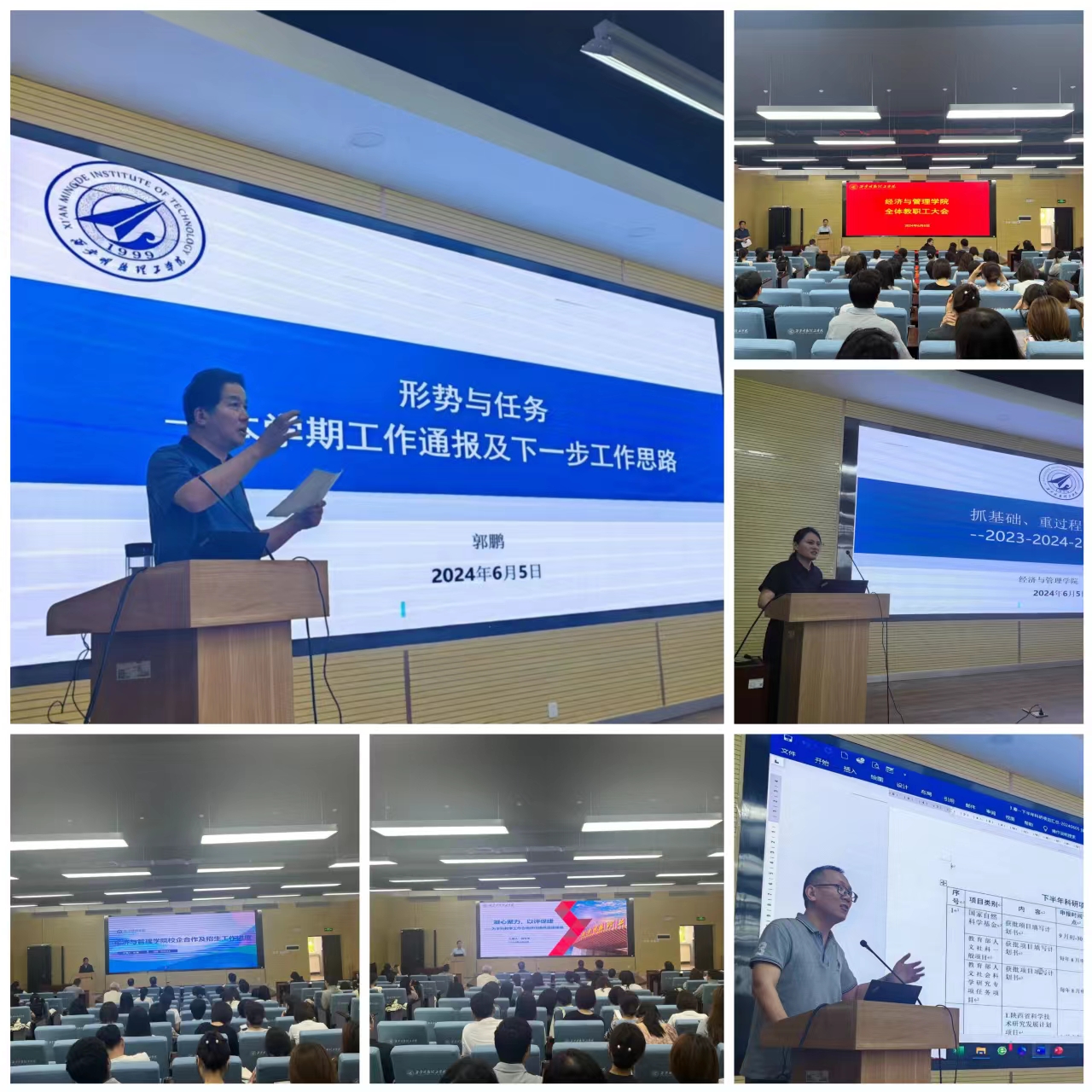 会议伊始,院长郭鹏教授介绍了本学期新进教师,以“形势与任务——本学期工作通报及下一步工作思路”为题,分析了当前学院发展与评估中的问题与压力,结合学校2024年目标责任书对学院现阶段工作进行了总结,对下一步工作做了安排部署。他要求全体教职工各尽所能,守住合格评估底线,努力提高学生满意度和就业率,号召大家共克时艰、共渡难关、共谋发展、共同发力、提升专业建设水平,以评促建,确保教育教学质量。