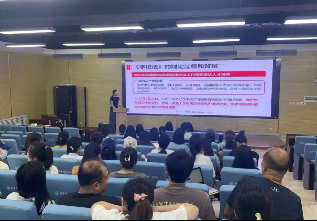 李玥阐述了《学位法》对于高等教育和学位授予工作的重要意义,强调了学位法实施对提升教学质量和学术水平的深远影响。会计学专业教师明凤对《学位法》的制定背景、主要内容和修订意义进行了详细介绍,对学位工作体制、学位授予资格、学位授予条件、学位授予程序和学位质量保障等《学位法》的核心内容一一解读。