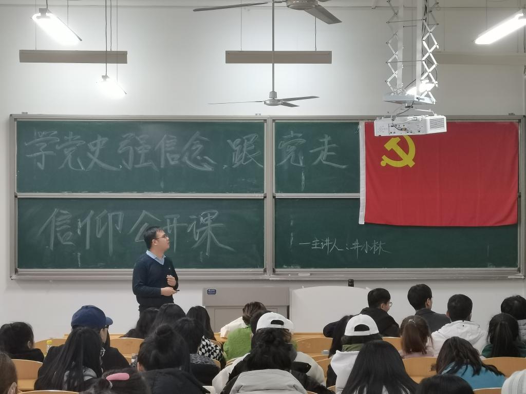 在深入学习贯彻党的十九届六中全会精神之际,经济与管理学院于11月25日晚在立德楼203举办第二季“学党史、强信念、跟党走”信仰公开课。学院部分入党积极分子及共青团员聆听了本期公开课。
