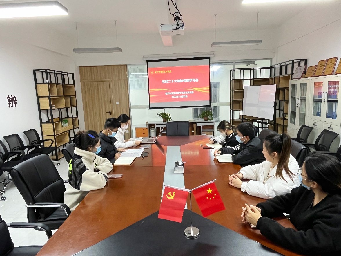 11月22日,经济与管理学院学生第五党支部在明志楼北507通过线上线下相结合的方式召开党的二十大精神专题学习会。支部全体党员参加了学习,会议由支部书记邹代柳主持。