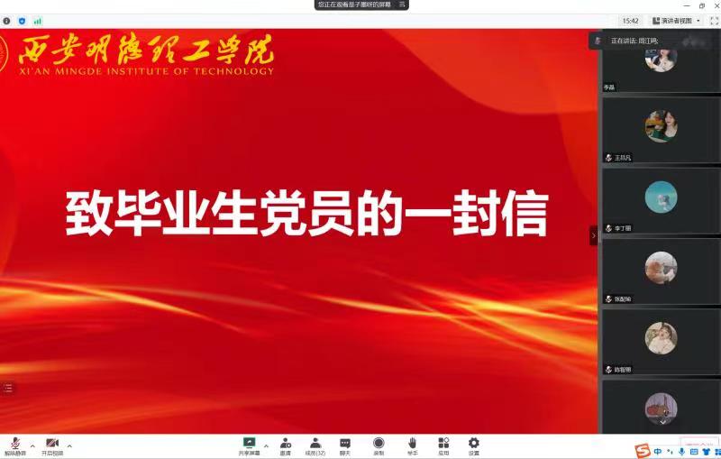 为激励全体毕业生党员牢记身份,以良好的精神风貌踏上新征程。经济与管理学院学生第六党支部于6月6日下午通过腾讯会议的方式召开毕业生党员座谈会,支部委员、全体毕业生党员参加了会议,会议由支部书记马子墨主持。