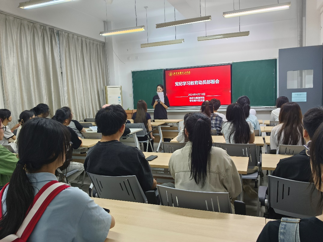 4月18日下午,经济与管理学院学生第六党支部在培德楼103召开党纪学习教育动员部署会。全体学生党员通过线上线下两种方式参加了会议,会议由党支部书记马子墨主持。