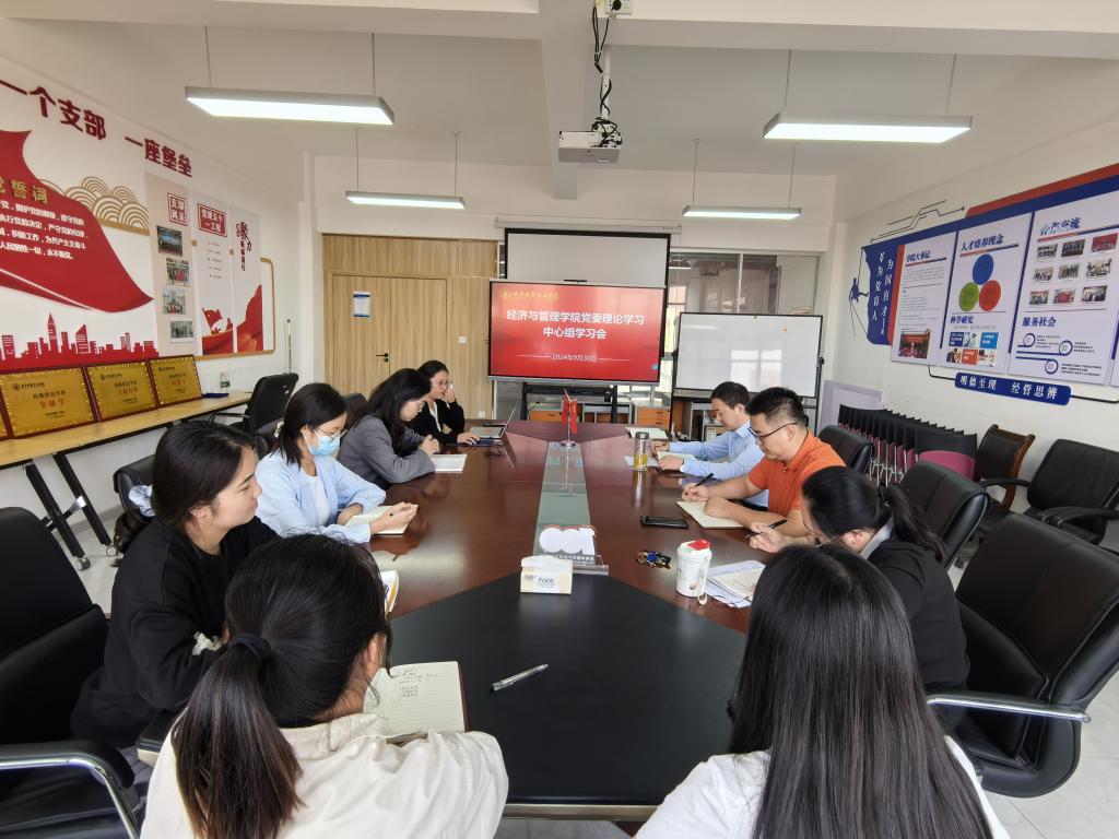 9月30日,经济与管理学院在明志楼北606召开党委理论学习中心组学习会,专题学习党的二十届三中全会精神和全国教育大会精神,学院党委委员、党建专干、师生党支部书记参加了会议,会议由学院党委书记兼行政副院长何文举主持。