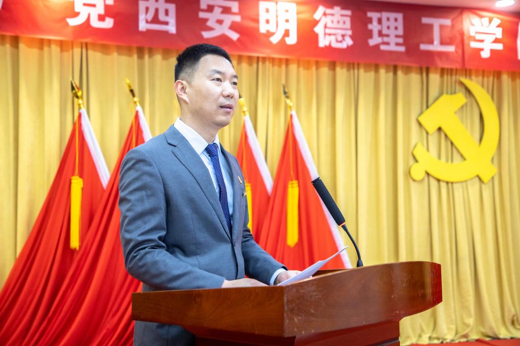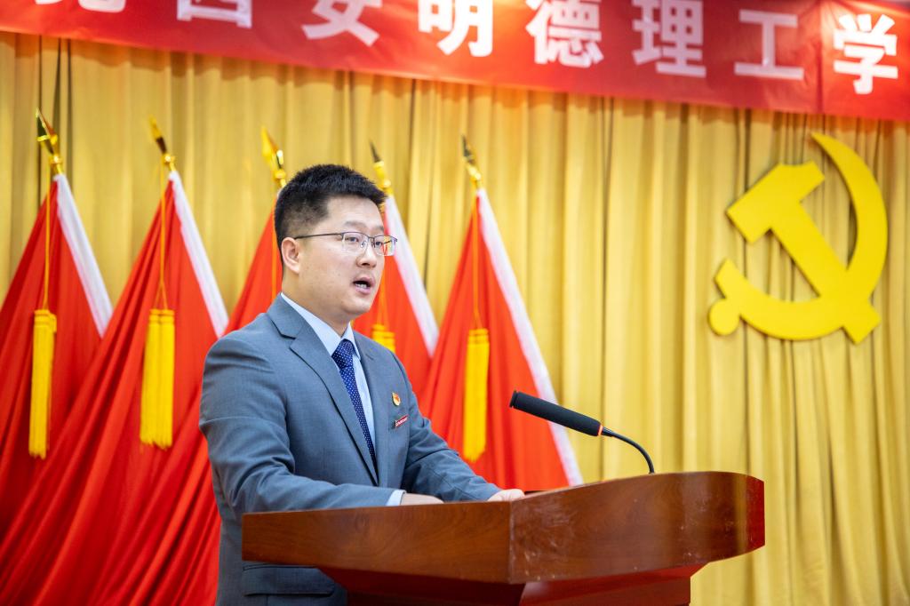 大会在雄壮的国歌声中开幕。学校党委副书记、纪委书记董昊同志代表学校党委对大会的顺利召开表示热烈的祝贺!他在致辞中指出,机关党委召开第一次党员大会,是对机关党委成立以来工作的回顾和总结,也是明确新一届党委的工作目标和主要任务。希望全体机关教职工以这次党员大会为新起点,形成共识、凝聚合力,推动学校高质量转型发展;希望机关各单位认真贯彻落实大会提出的各项任务,以时不我待、奋发有为的精神,统一思想、统一行动、抢抓机遇、破解难题,加快推进机关各项事业健康快速发展;希望机关新一届党委班子不辜负学校党委和机关全体党员同志们的信任,积极作为,善作善成、敢于担当、不断创新、奋发有为,为学校又好又快发展贡献力量。